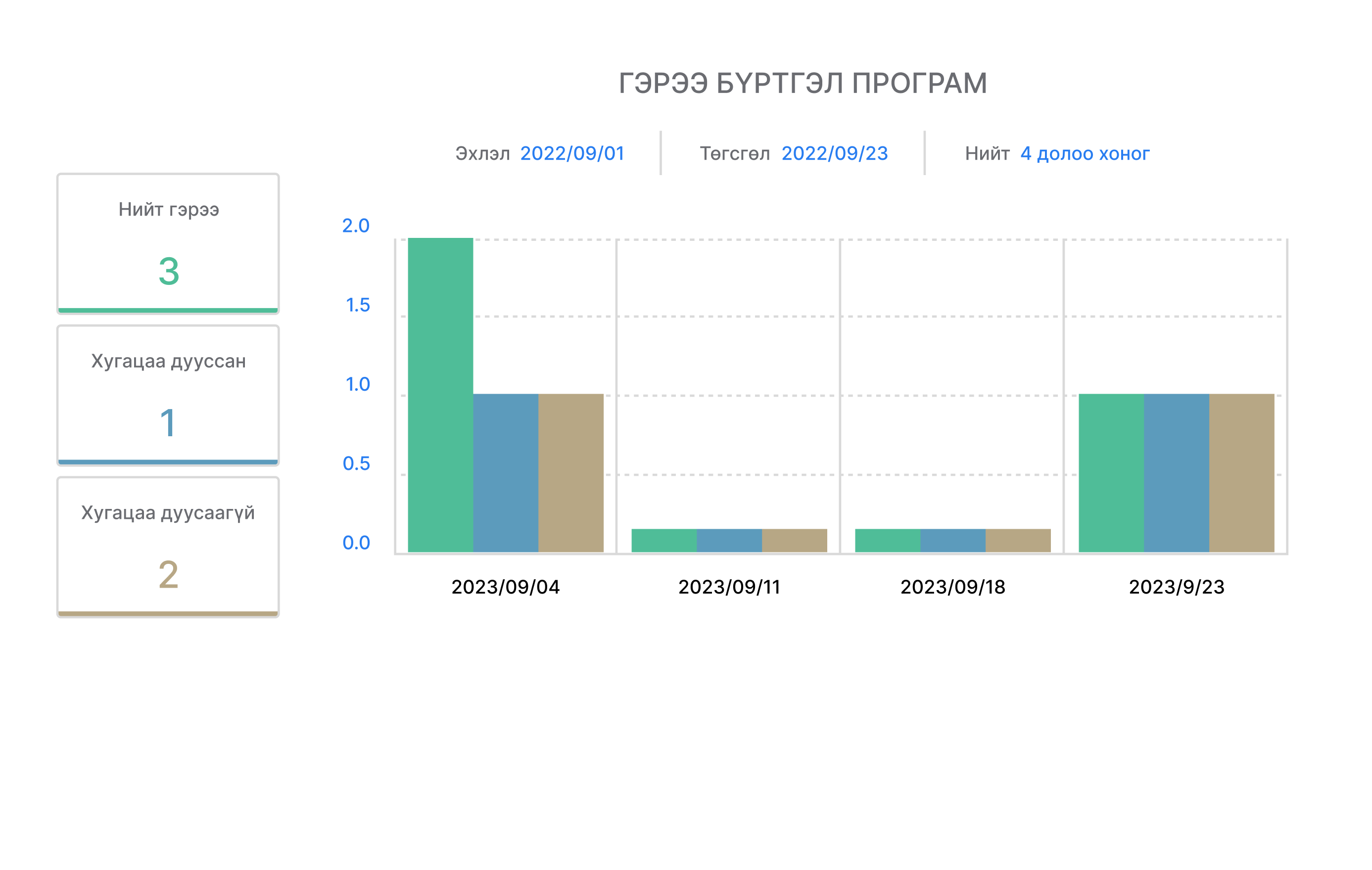 Гэрээний бүртгэл программ нь хугацаа дөхсөн, хугацаа хэтэрсэн гэсэн тусгай тэмдэгтийг харуулдаг
